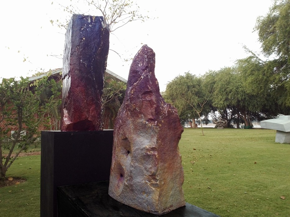 Fountain in the Rose GardenMixed Media (acrylic, gold, brass and silver leaf) on stone